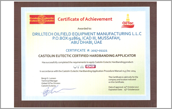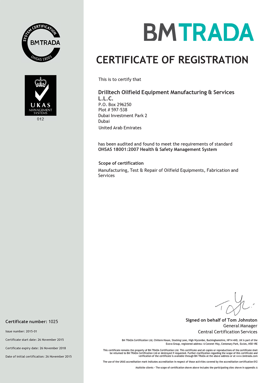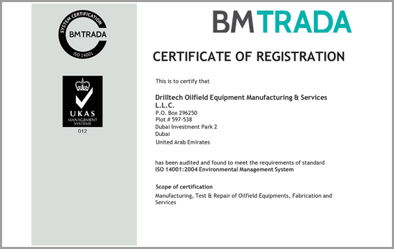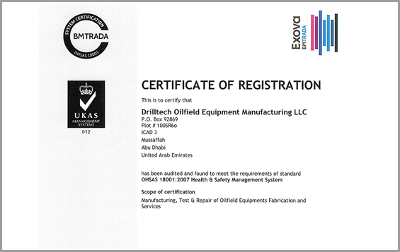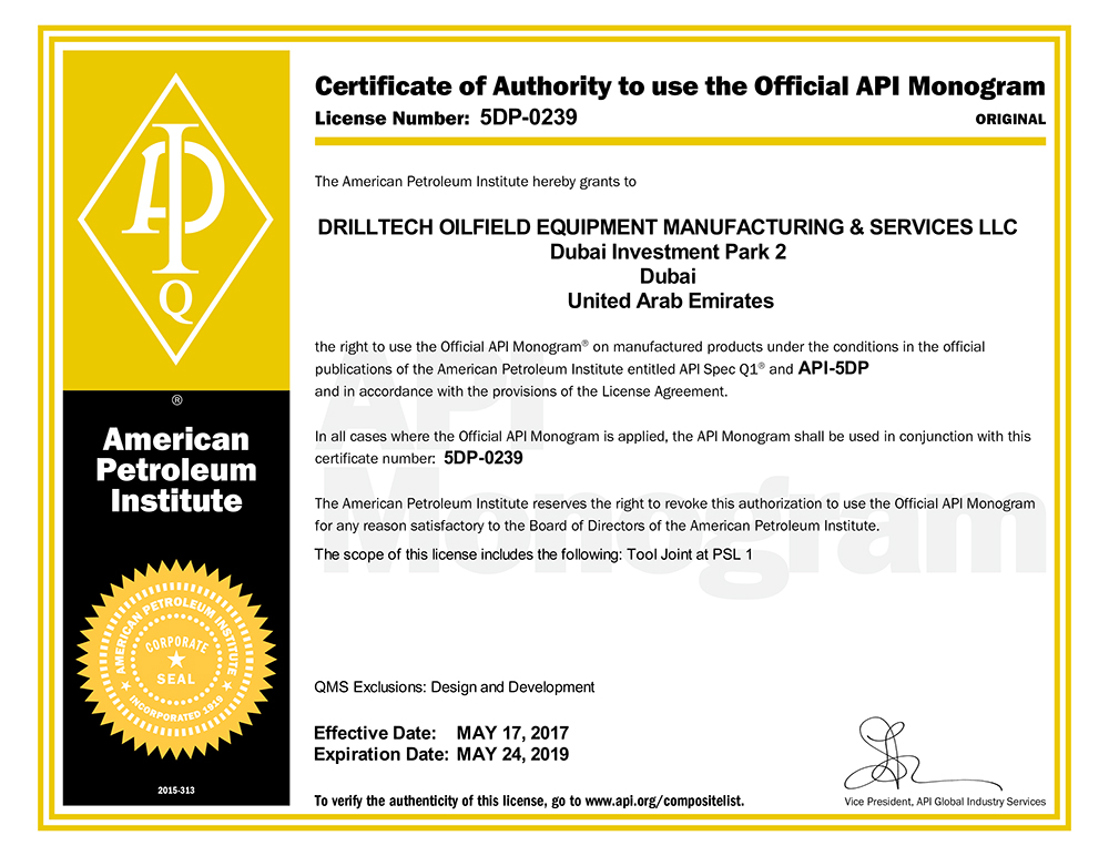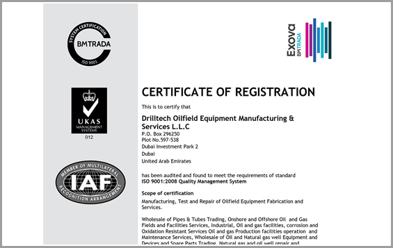 DrillTech Oilfield Equipment Manufacturing & Services, LLC is committed to a Policy for Continual Improvement in the performance of our Quality Management System in the field of Manufacture ,Test &Repair of Oilfield Equipment, Fabrication and Services through a structured QMS established and implemented in accordance with ISO 9001:2008 and ISO/TS 29001:2010 Standards