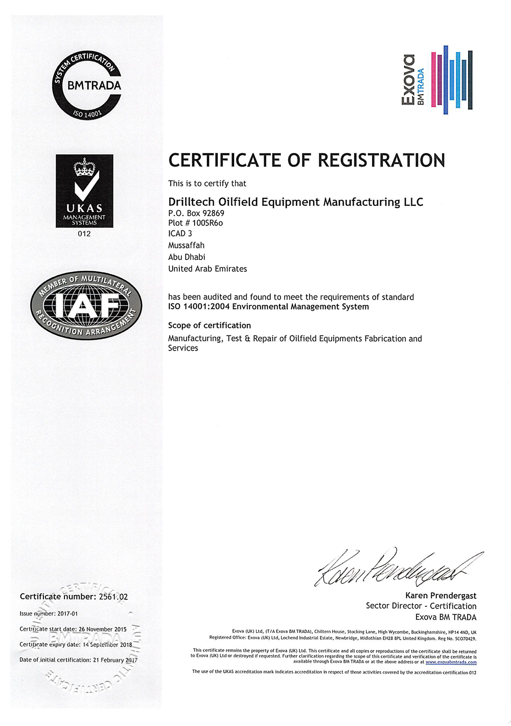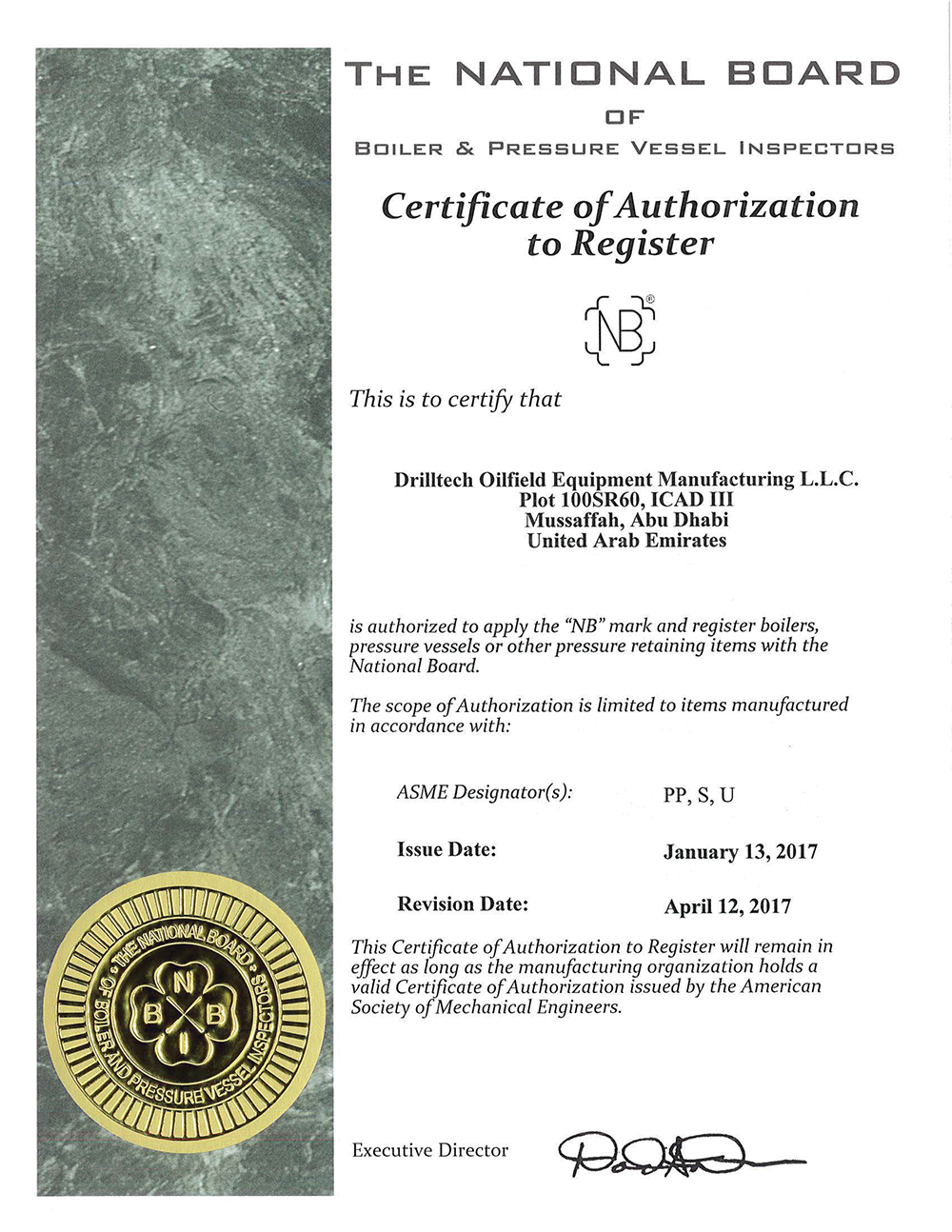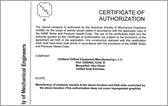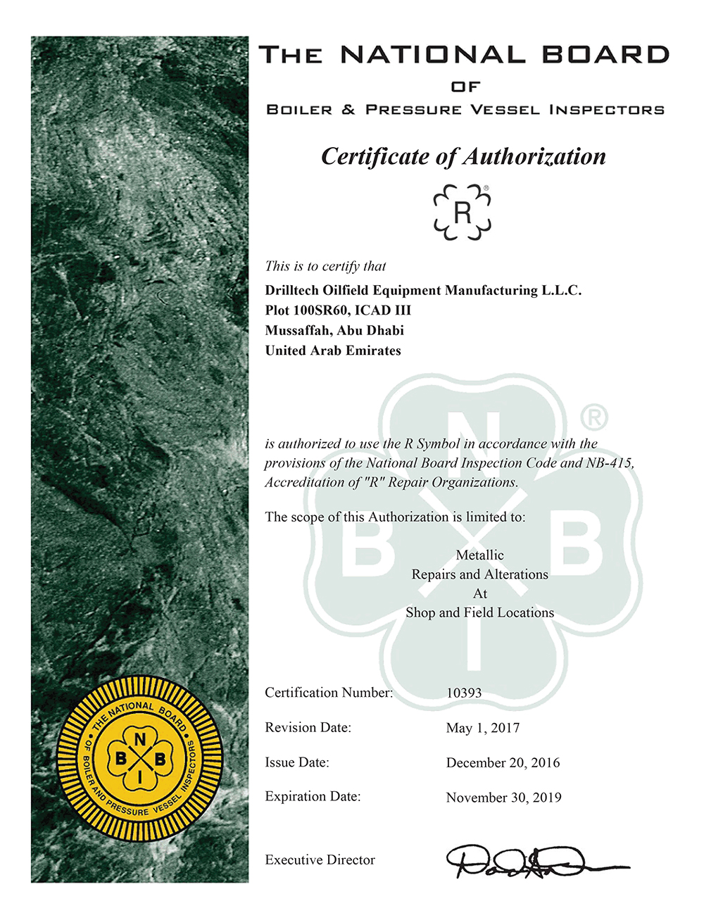 DrillTech Oilfield Equipment Manufacturing & Services, LLC is committed to a Policy for Continual Improvement in the performance of our Quality Management System in the field of Manufacture ,Test &Repair of Oilfield Equipment, Fabrication and Services through a structured QMS established and implemented in accordance with ISO 9001:2008 and ISO/TS 29001:2010 Standards